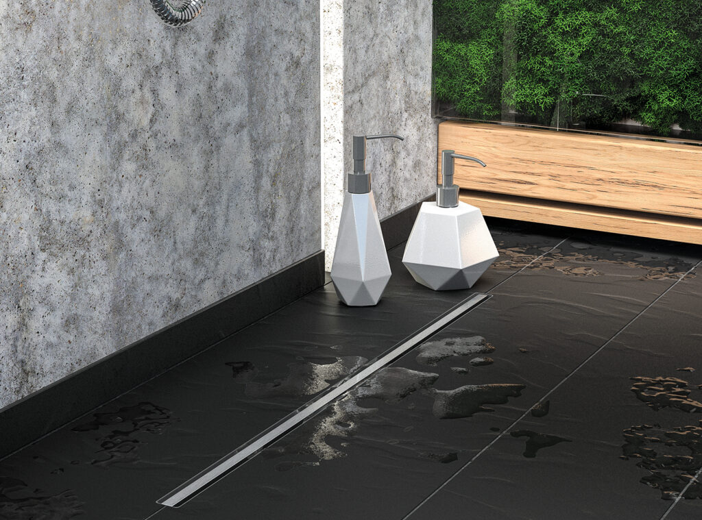 Линен сифон Slim, изработен от неръждаема стомана включва тясна, минималистична решетка под формата на стоманена правоъгълна пръчка, която придава елегантност