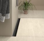 Отводнителното тяло се вгражда в замазката, а стоманеният профил се залепва заедно с плочките над замазката.
