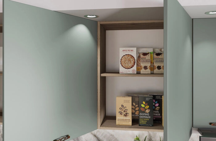 Фолираният МДФ е много по-красив и устойчив във времето, защото фолиото обхваща цялата лицева и странична част на вратичката без кант.
