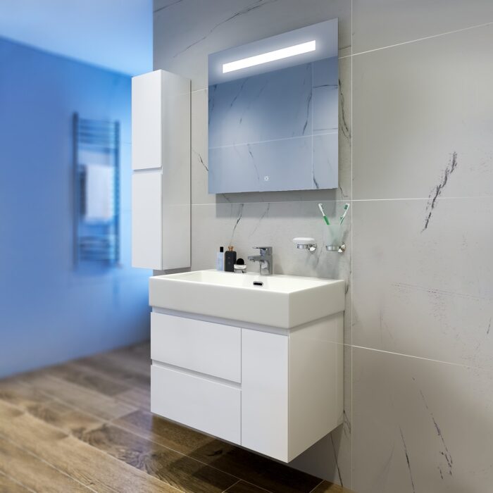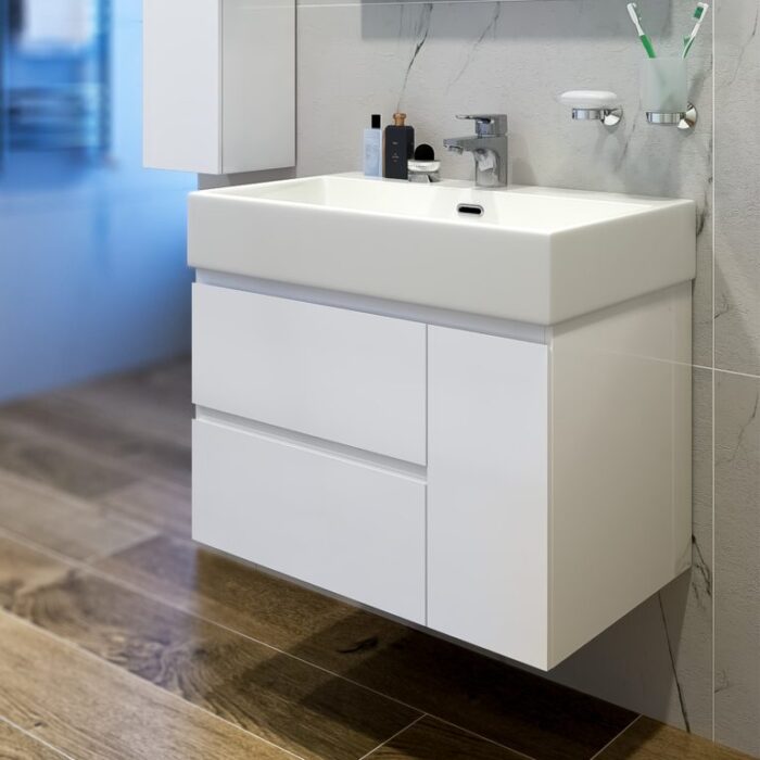 Съвършено водоустойчив шкаф за вашата баня. С две чекмеджета и вратичка, които практично разпределят пространството.