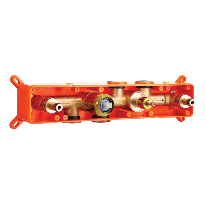 Вграденият смесител за вана Pola е отговор на пазарното търсене на практични модели. Разположението на чучура, лоста, функционалния селектор и слушалката прави смесителят да изглежда модерно и нарушава схемата на кръглите модели за скрит монтаж. Смесителят е оборудвана със слушалка със система против варовик.