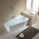 • Асиметрична вана за баня от серия Diamond с вграден смесител и душ