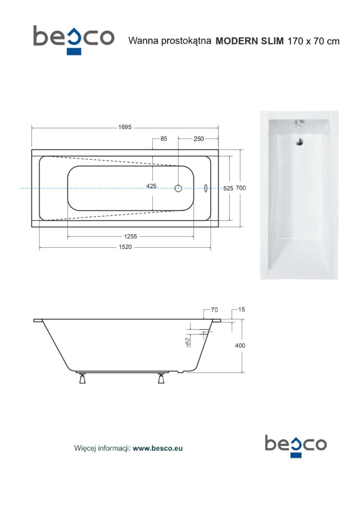 Вана Modern Slim е изработена от санитарен акрил , който се различава по много фактори от PVC материалa. Ключова разлика е здравината, която има акрилът, което го прави трудно чуплив. Санитарният акрил е много по-гладък от PVC материалa. Следователно, мръсотията по-трудно се задържа по ваната, в следствие, на което се поддържа по-висока хигиена.